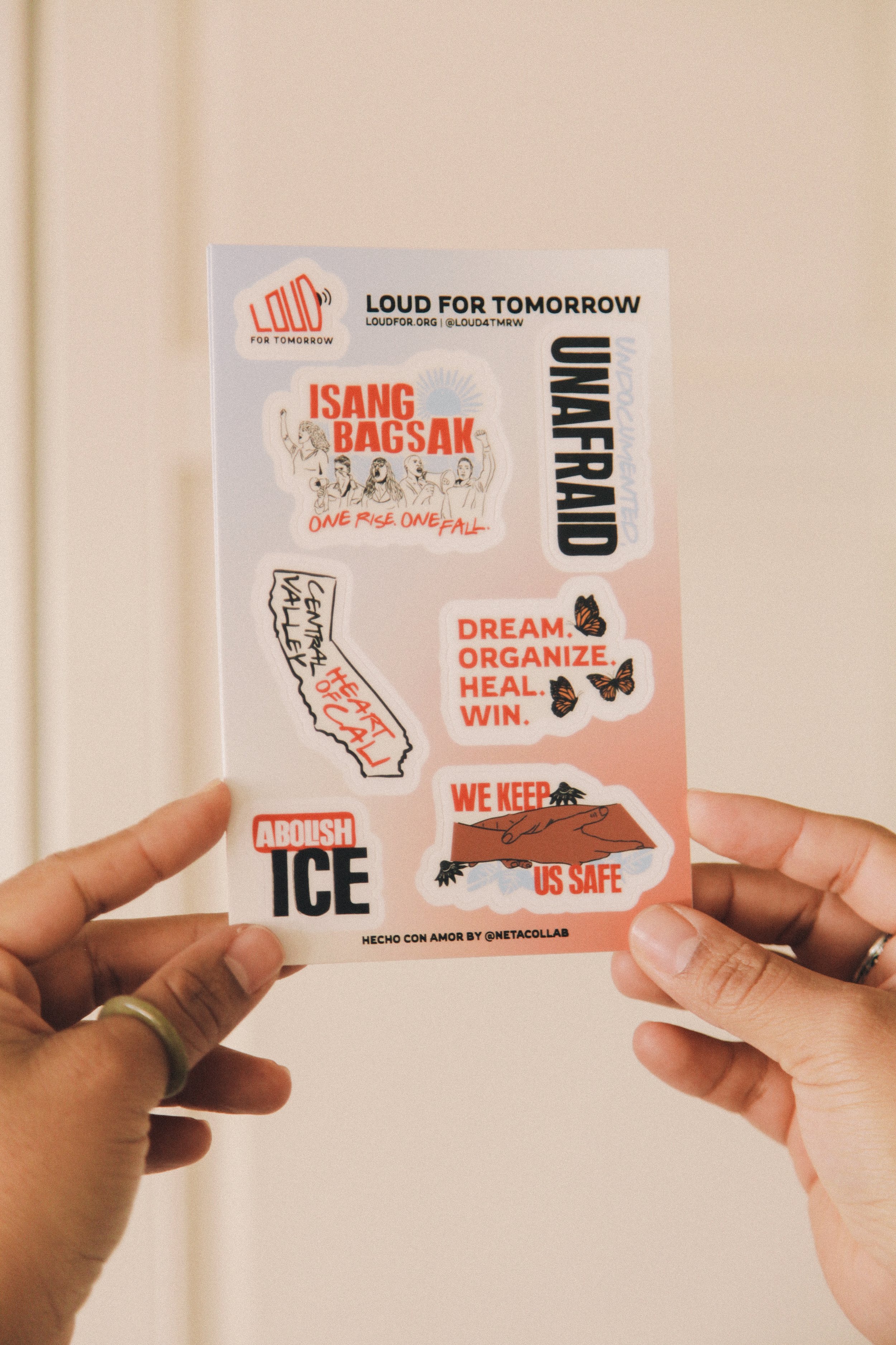 Neta collaborated with the LOUD team to release a series of merch, including a custom t-shirt, tote, and sticker pack. Neta photographed the merch and provided creative direction.