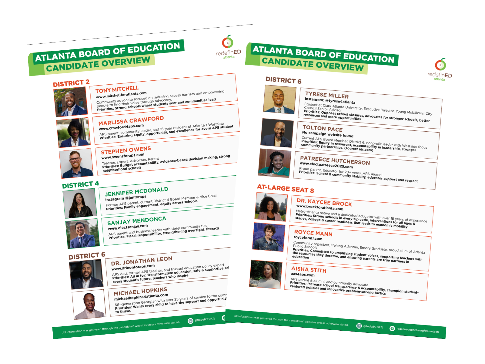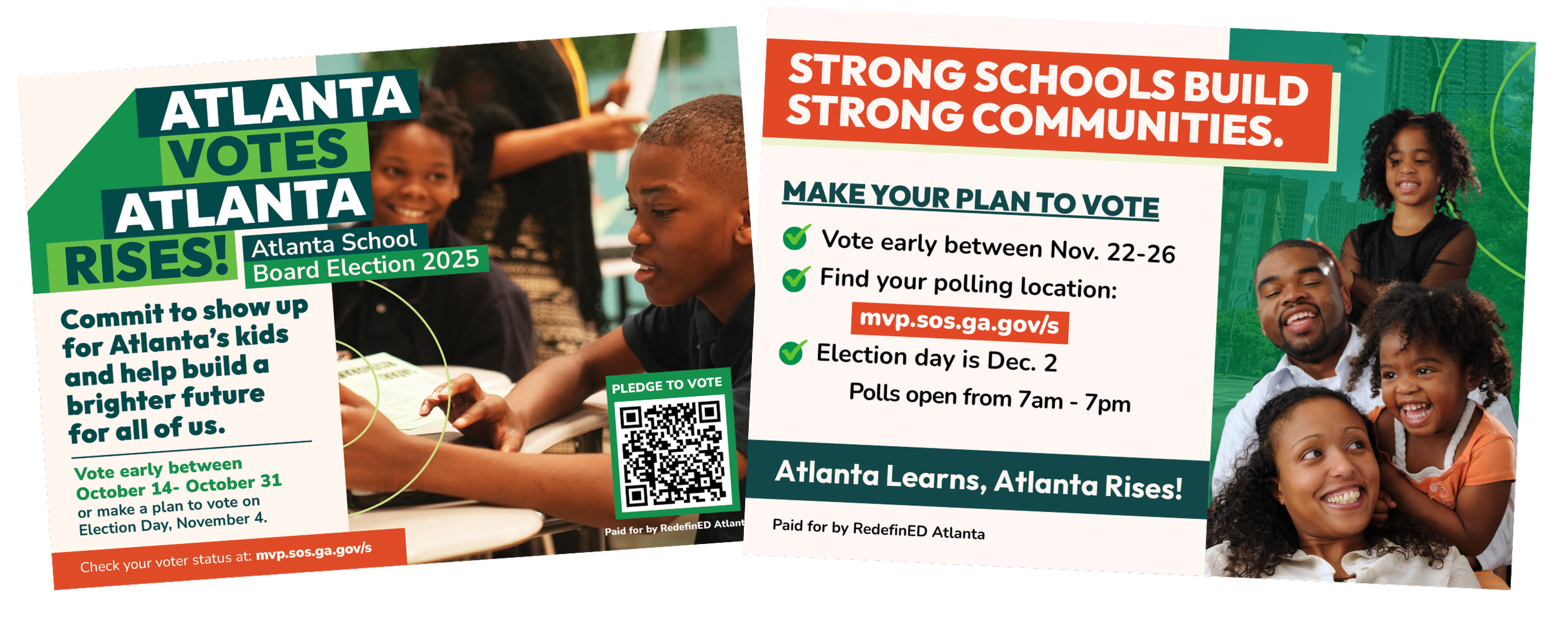 Neta created a series of mailers and handouts for voters in Atlanta for the School Board election.