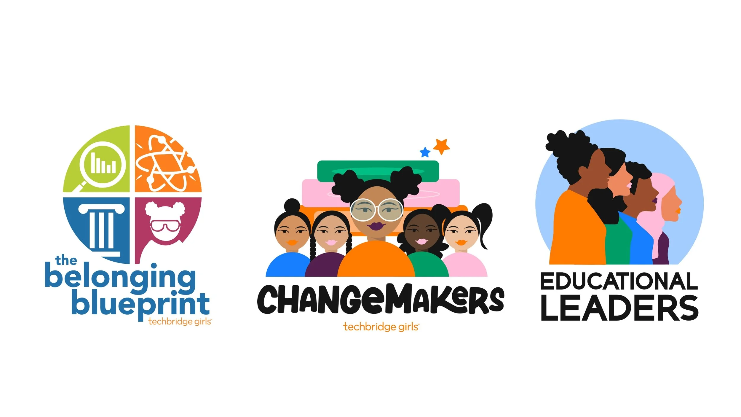 Designed a full suite of program logos for TBG's core curricula: Ignite, Inspire, ChangeMakers, Trailblazers, and Catalyzers. Each logo reflects the distinct age group and energy of the program while staying cohesive within the TBG brand family.
